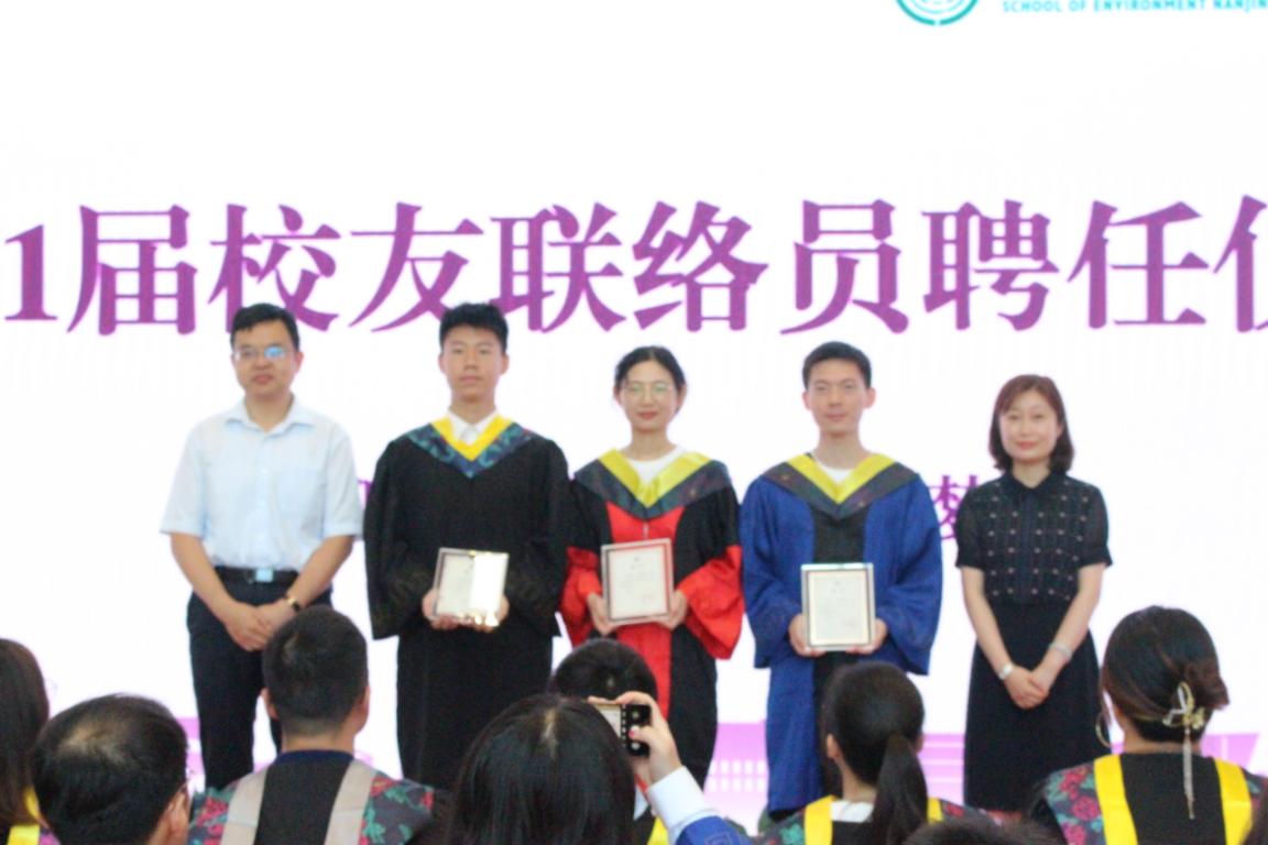 为有效加强毕业生与母校的联系与交流,成人动漫 党委书记刘建萍、环境校友会秘书长陆朝阳为2021届三位校友联络员朱博阳、廖宇星、王梦杰颁发了聘书。