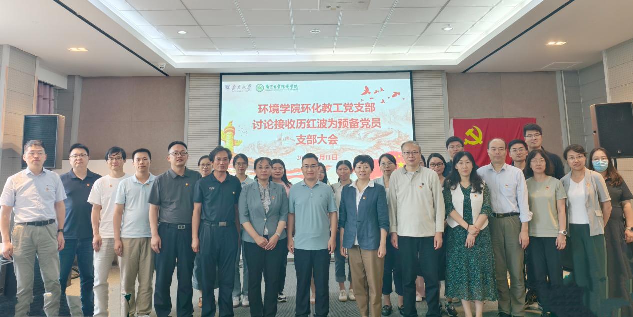 会上,历红波同志汇报了自己积极向党组织靠拢的思想发展历程。他表示,在求学和工作的40年过程中,深刻认识到"中国共产党领导是中国特色社会主义最本质的特征,是中国特色社会主义制度的最大优势"的深刻内涵,亲眼见证了中国共产党带领全国人民实现国家富强、民族振兴、人民幸福的中国梦的奋斗历程,这更加坚定了他入党的决心。作为环境科学与工程领域的教学科研工作者,他坚持立德树人,全心全意为党育人、为国育才,培养优秀毕业生投身生态环境保护第一线;立志尽职尽责科技报国,开拓进取,在推动科技自立自强上展现南大作为。他将以共产党员的标准更加严格要求自己,更好地为报效国家、服务人民贡献自己的力量。