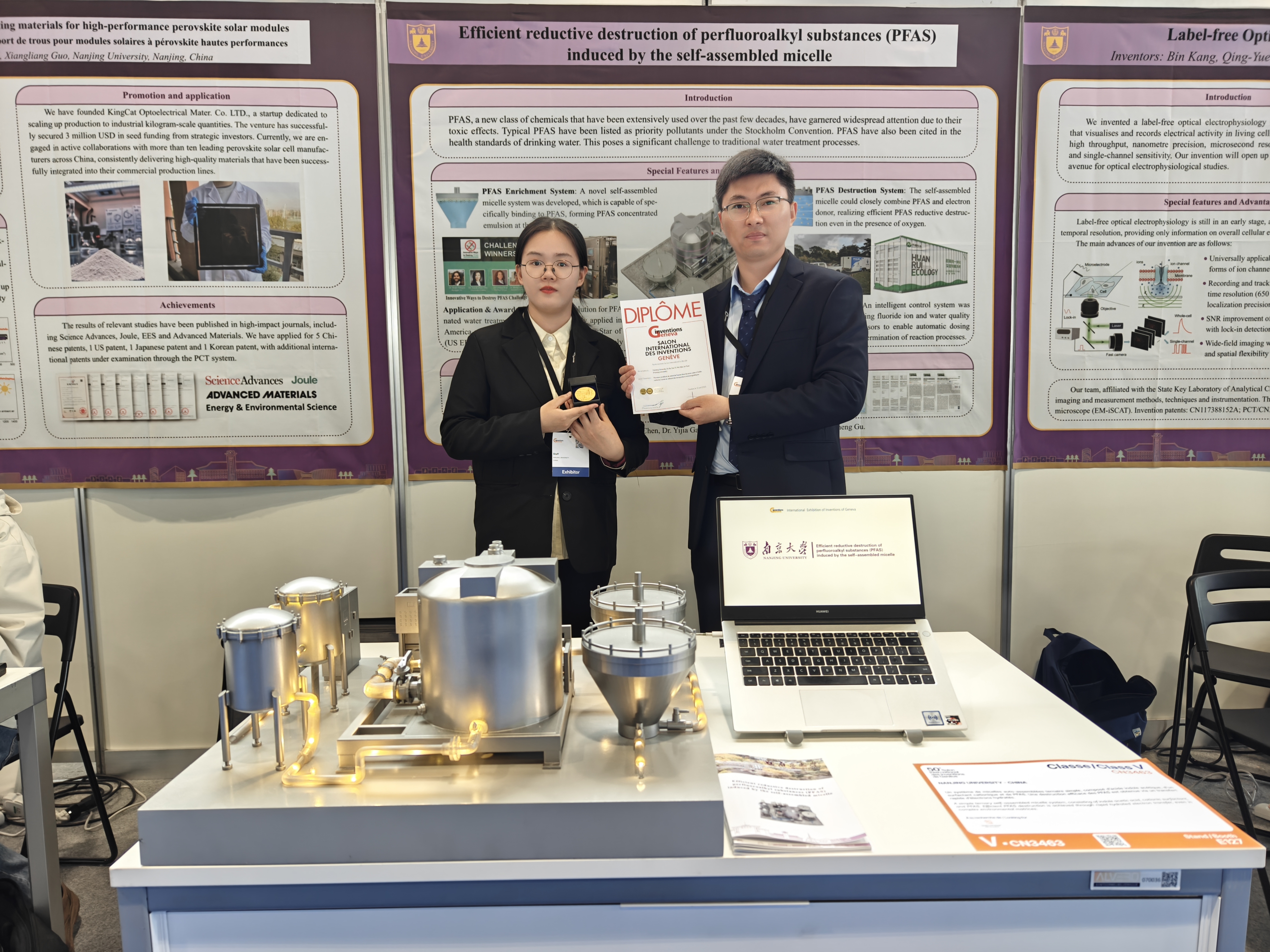 “特别嘉许金奖”项目:谷成、陈张浩团队的“一种高效降解全氟烷基化合物的自组装胶束技术”,该项目通过在反应中构建自组装胶束,有效拓展了高级还原反应的适用范围,大大降低了还原反应对氧气含量、pH变化的敏感性,实现了对全氟烷基化合物的高效降解脱氟,为以全氟烷基化合物为代表的典型新污染物的治理提供了技术支持。